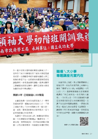 工最優質的師資及課程,讓勞工領袖大學成 辦有「職場ㄟ大小事」專題講座,6月
