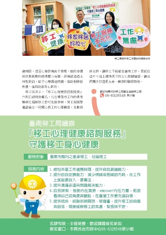 確病因,透過心理諮商後才發現,他的身體 供支持,讓移工不僅能在臺南工作,更能在