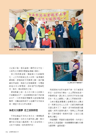 鋼架板,接著再依不同專業上陣,進行牆 安住,老太太很開心,讓志工們感到欣慰。