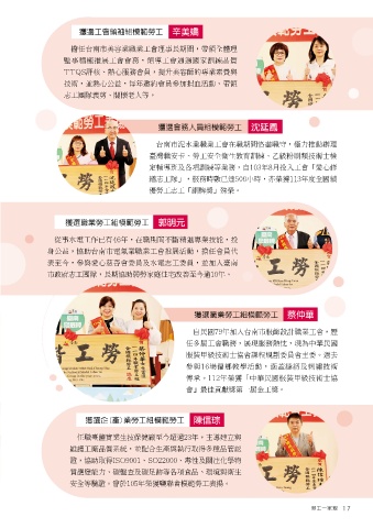 獲選工會領袖組模範勞工 辛美嬌