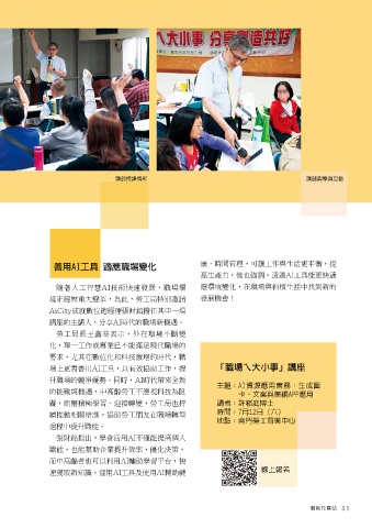 講座的主講人,分享AI時代的職場新機遇。 「職場ㄟ大小事」講座