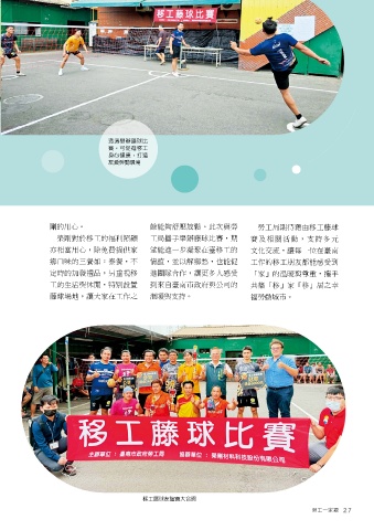 榮剛對於移工的福利照顧 工局攜手舉辦藤球比賽,期 賽及相關活動,支持多元